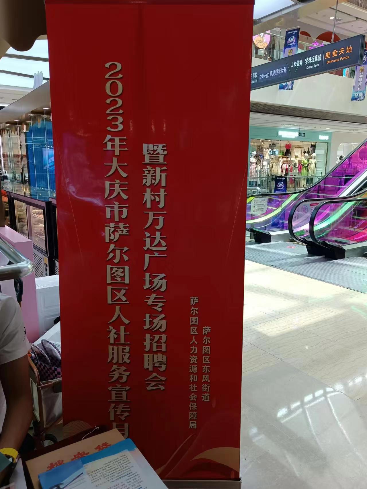 6月3日上午9:30----11:00分,大慶市薩爾圖區人社局在新村萬達廣場舉辦了“2023年大慶市薩爾圖區人社服務宣傳月暨新村萬達廣場招聘會”。